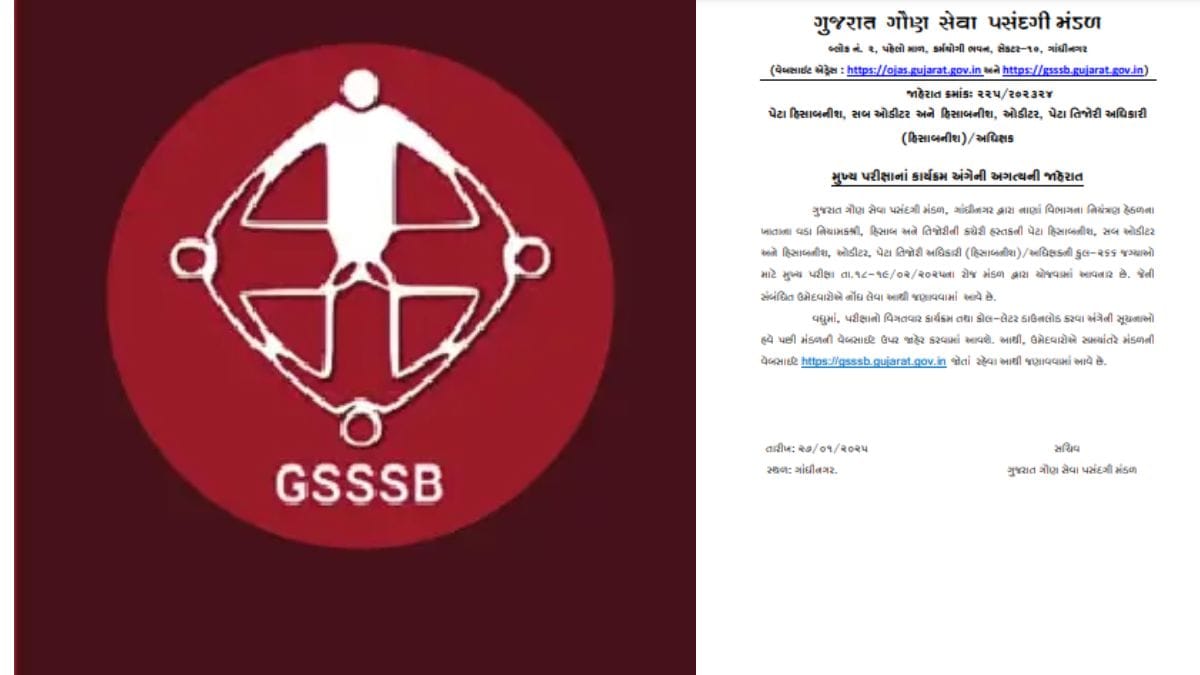 GSSSB Exam : ગુજરાત ગૌણ સેવા પસંદગી મંડળ દ્વારા મુખ્ય પરીક્ષાની તારીખો જાહેર, જુઓ ટાઈમ ટેબલ