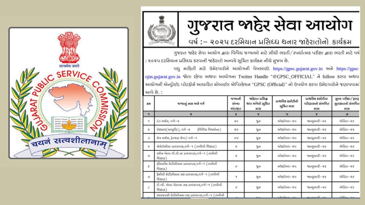 GPSC Calendar 2025 : ગુજરાત જાહેર સેવા આયોગ ભરતી માટે 2025 માટેનું કેલેન્ડર જાહેર, વાંચો સંપૂર્ણ વિગત
