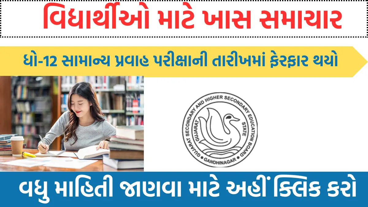 ધોરણ 12 ના વિદ્યાર્થીઓ માટે મહત્વના સમાચાર ગુજરાત બોર્ડ ની પરીક્ષા ની તારીખ માં ફેરફાર