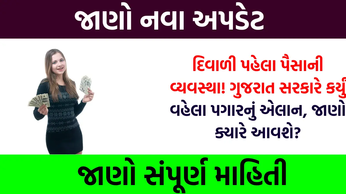 દિવાળી પહેલા પૈસાની વ્યવસ્થા ગુજરાત સરકારે કર્યું વહેલા પગારનું એલાન જાણો ક્યારે આવશે