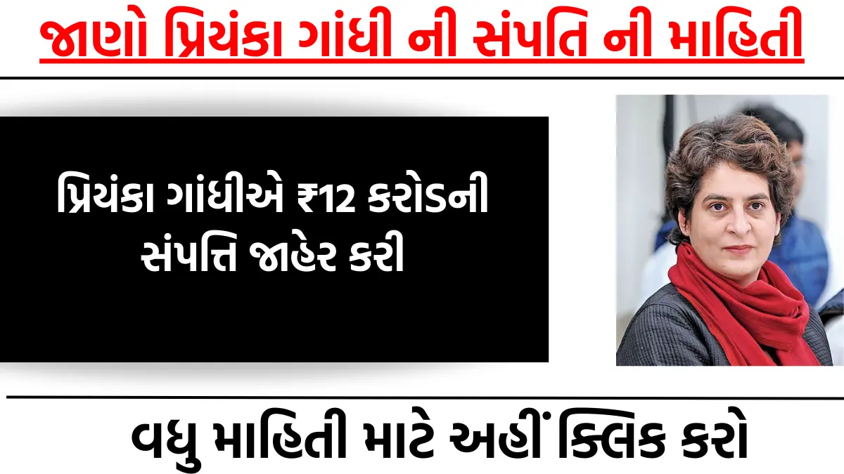 Priyanka Gandhi Net worth: કોંગ્રેસના મહાસચિવ પ્રિયંકા ગાંધીએ બુધવારે વાયનાડ લોકસભા પેટા ચૂંટણી માટે કોંગ્રેસના ઉમેદવાર તરીકે ઉમેદવારી નોંધાવી હતી એફિડેવીટમાં તેમણે બાર કરોડ ...