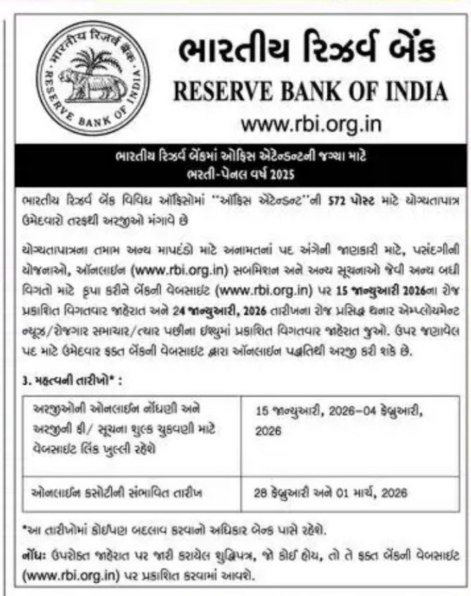 ભારતીય રિઝર્વ બેંક… દેશની સૌથી પ્રતિષ્ઠિત સંસ્થા. અને હવે અહીં 10મી પાસ ઉમેદવારો માટે 500થી વધુ ઓફિસ એટેન્ડન્ટની ભરતી આવી છે. સાંભળતા જ દિલ થોડી આશા ભરાઈ જાય છે ને?